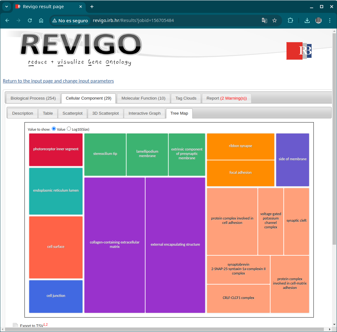 Abrimos el fichero ‘GOs_oe.txt’ y copiamos y pegamos su contenido en la web de REVIGO.