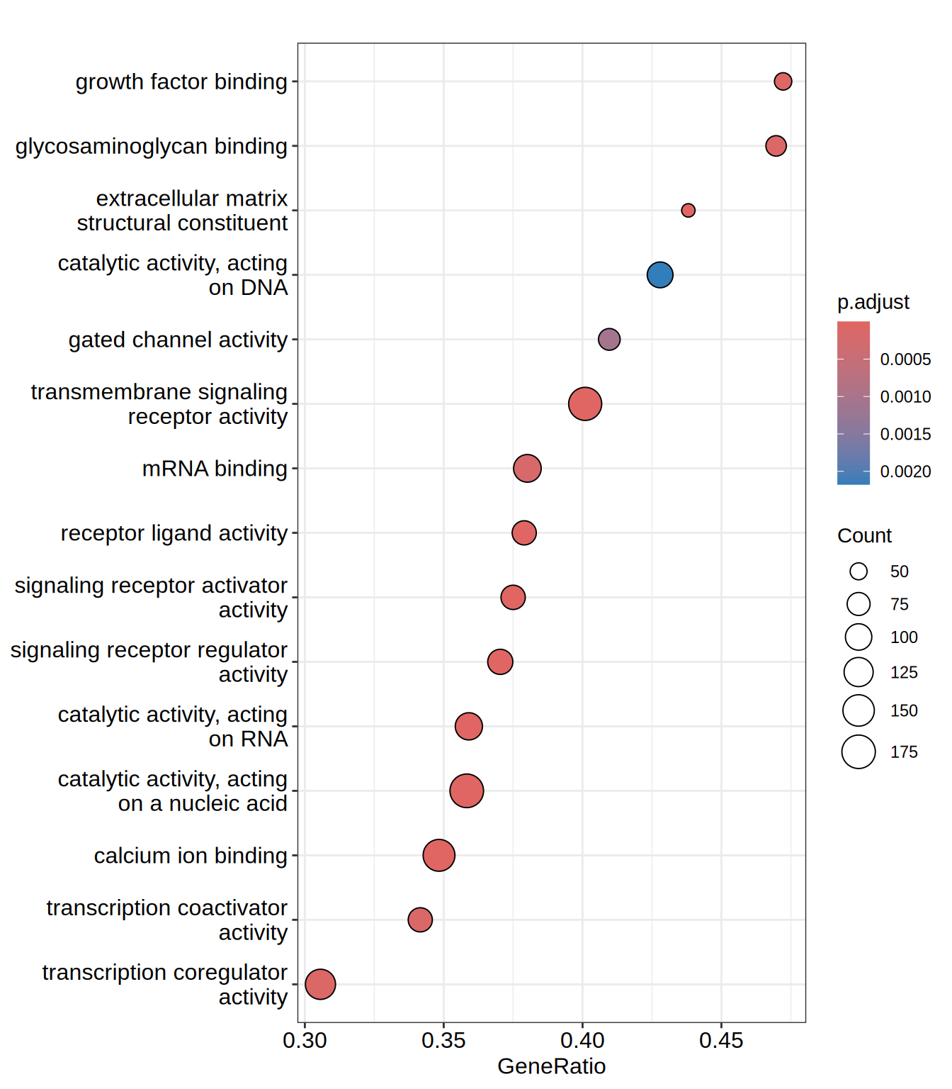 dotplot(go.MF, showCategory = 15)