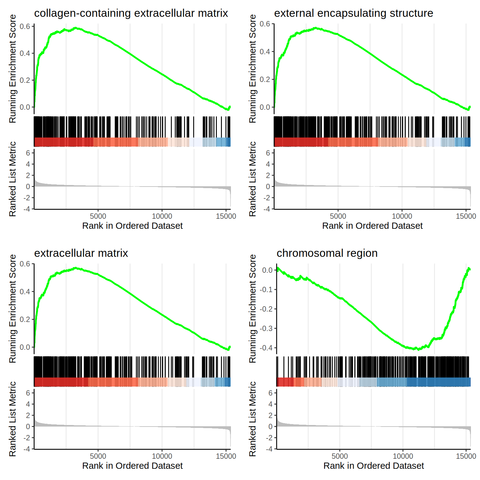 | GO:0030312 | GO:0030312 | external encapsulating structure | 335 | 0.5716858 | 2.446870 | 0 | 0 | 0 | 3260 | tags=49%, list=21%, signal=39% | ACHE/INHBE/COL23A1/OLFML2A/IGFBP7/MDK/ADAMTS7/HTRA1/COL5A1/ADAMTS2/COL6A2/ADAMTS1/HSPG2/COL13A1/ITIH5/GDF15/FBN3/ADAMTS10/LAMC1/SRPX/ACAN/ADAMTSL3/EGFLAM/COL2A1/CXCL12/AGRN/SULF1/THSD4/MMP2/BCAM/LAMA1/NTN4/NID2/LAMB1/COL21A1/EFEMP1/MATN3/LTBP4/HAPLN2/SNED1/COL3A1/NPNT/LUM/THBS3/ELFN1/KAZALD1/ELFN2/ABI3BP/EGFL7/LOXL2/FBN2/CLU/TIMP3/ADAMTSL4/COL14A1/LAMA5/EMID1/SERPING1/ACTA2/PTX3/LRIG3/FLRT3/COL4A4/ADAMTS18/EDIL3/COL27A1/LOXL4/FREM2/CSPG4/ADAMTS4/CRELD1/OLFML2B/LTBP2/EMILIN3/ZP3/PXDN/COCH/GPC6/COL24A1/SPON1/ITGB4/ANXA1/ADAM11/MATN2/OVGP1/L1CAM/COL19A1/FBLN1/LRRN2/SMOC2/CTSC/LAMC3/TGFB1/ADAM19/NAV2/LAMB2/RTN4RL2/COL4A6/LAMA4/LINGO1/COL12A1/WNT6/VCAN/SERPINE2/NDNF/GLG1/ANXA4/ANXA5/ADAMTS3/GPC5/WNT11/ADAMTS9/MMP14/SERPINF1/GPC4/ADAMTS15/LRIG1/FN1/LAMA3/LMAN1/GPC3/COL4A1/WNT5B/HAPLN3/TNC/ADAMTS8/SERPINH1/CCDC80/ADAMTS6/ADAMTS13/FLRT2/LGALS3BP/LINGO3/THBS4/TLR3/MMP15/LTBP1/APOE/NCAM1/MMP11/MMP16/FBLN5/COL4A5/EMILIN2/SFRP1/DCN/HSP90B1/FREM1/MFAP2/C17orf58/HMCN1/COL18A1/FLRT1/SDC3/ANGPTL2/COLEC12/NID1/ANG/LTBP3/MFGE8/COL25A1/TRIL/FRAS1/GPC1 |