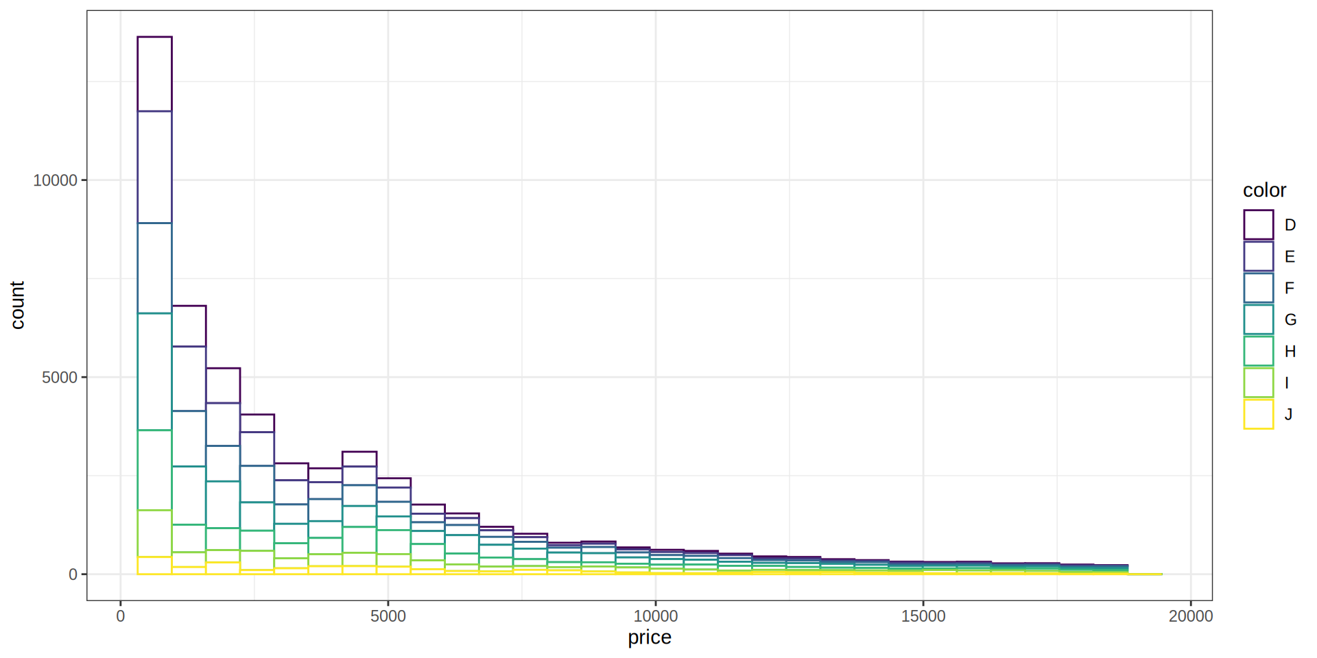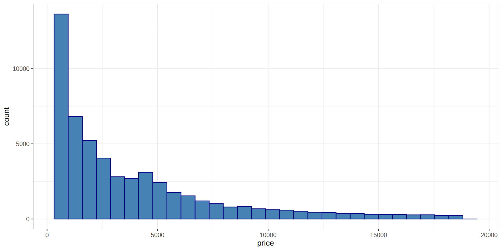 En el paquete ggplot2 esta incluido el dataset Diamonds que contiene el precio y otros atributos de 54.000 diamantes.