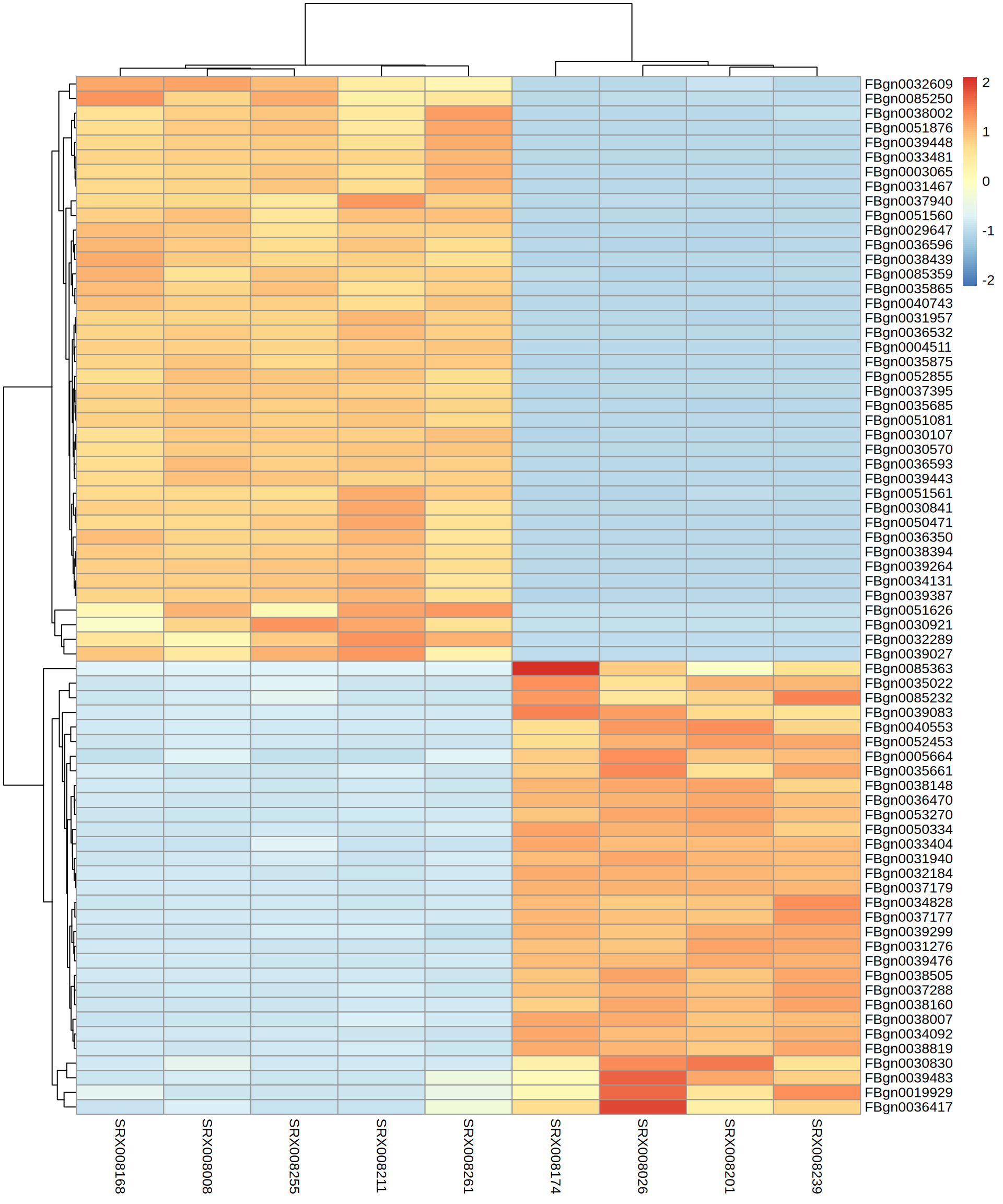[6] "FBgn0039448" "FBgn0038394" "FBgn0032289" "FBgn0051626" "FBgn0051560"